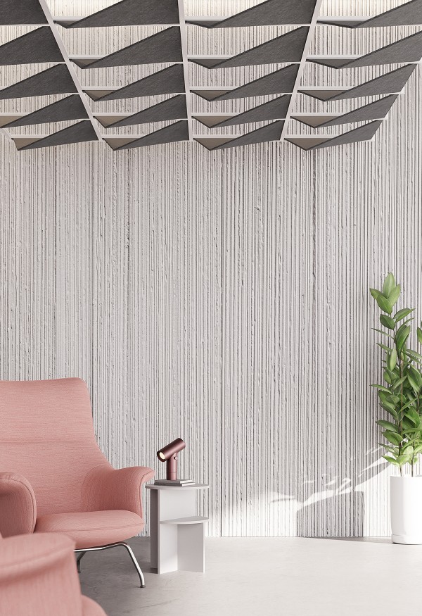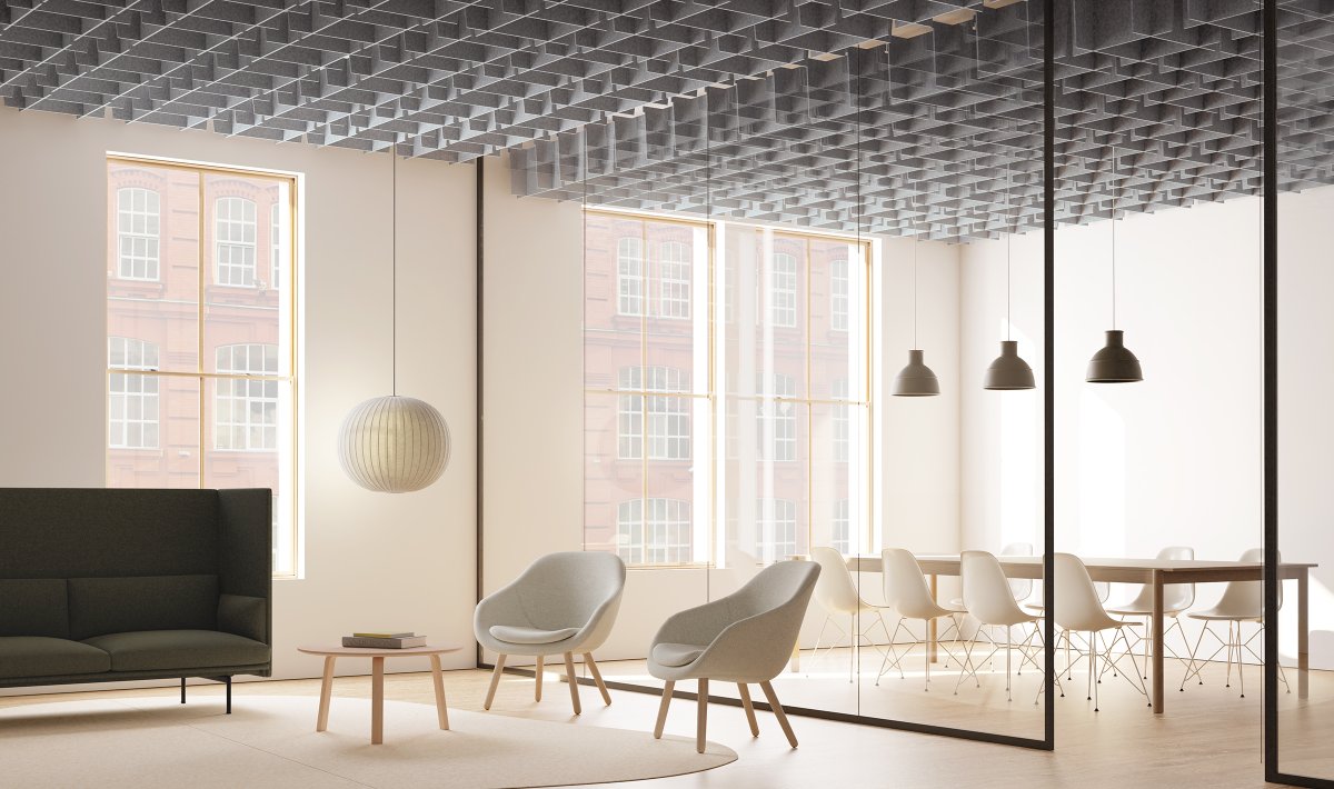 ARO Grid takes on the conundrum of masking all the clutter overhead while keeping the design bar high. While typical ceiling systems simply hide the inner workings of a building, ARO Grid is a series of acoustic ceiling products that balance form and function in modular products that allow multiple color options, customization, easy installation with a standard drop ceiling grid, all while being budget-friendly.