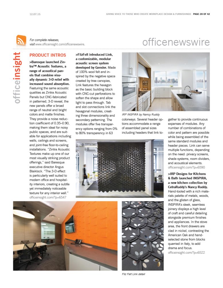 Prev Next Officeinsight, Dec 2015 Link—and FilzFelt's collaboration with Gensler—is featured in the Dec 07, 2015 issue of Officeinsight.