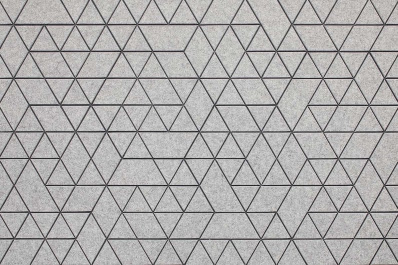Hive 2 is the bee’s knees with its randomized patterning. Inspired by honeycombs and the cells that make up their structure, this acoustic wall system is composed of a single hexagonal tile that rotates and repeats seamlessly to create an overall pattern greater than its parts. Together, these graphic tiles deliver some serious sound-absorbing oomph while providing playful patterning.