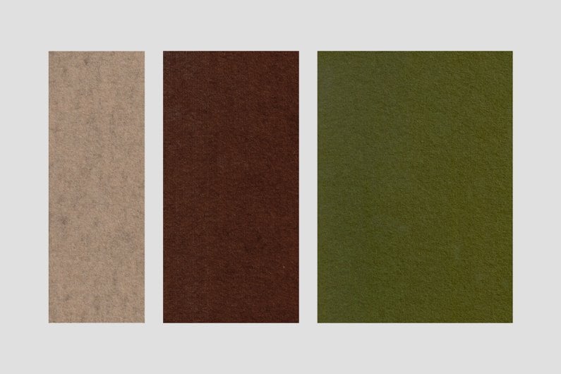 - Variation Wool felt is a natural material and color variation and inclusions of natural fiber on the surface are evidence of the 100% natural origin of the material. Product color is only indicative, as it is not possible to assure consistency of color in a natural product due to the natural color of raw wool and absorption of dyes. Color matching cannot be guaranteed between individual panels and expect color variation beyond the normal commercial range. In addition, variations in temperature and humidity can expand or contract the fibers affecting the size and shape of the felt. Please note that the material dimensions may change up to ±5% due to climate variation.