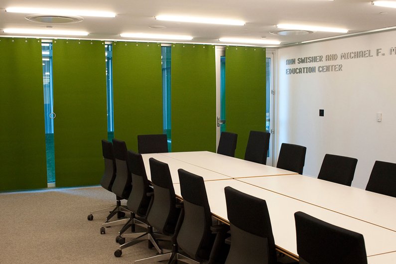 Solid Hanging Panels make a great complement to our patterned panels. Hang them alongside to emphasize a pattern, or behind to add a contrasting color and increase privacy. Install alone for a minimalist dose of color and texture! The softness, thickness, and density of 100% Wool Design Felt allow these no-nonsense panels to be cut with intricate patterning and hang freely without fraying or additional support. This modern screening system provides varied degrees of privacy and enables flexible space division with visual and acoustic separation to boot.