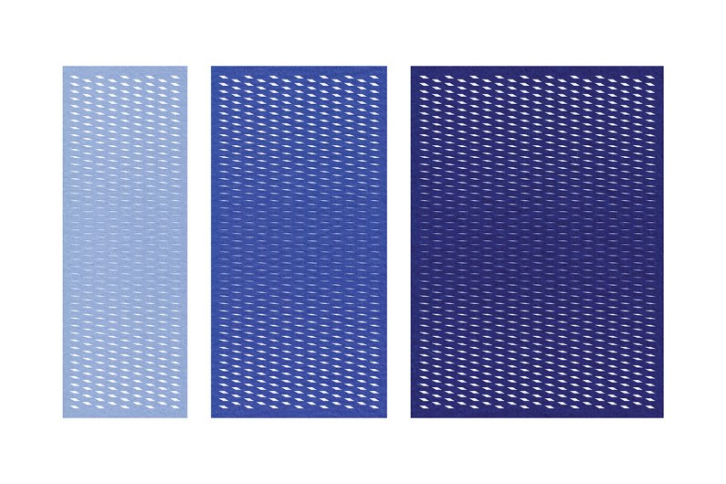 Parallelograms transform from open to closed in ARO Array 2, providing visibility from a standing position and increased privacy from a seated position. ARO Array hanging panels add texture, color, and modulated visibility to any space. ARO Array offers standard static and transforming patterns that can be used individually or in series. The ARO Collection is an Interior Design HiP Performance Wonder award winner.